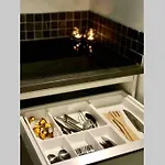 بالإضافة إلى وسائل الراحة مثل مكيف الهواء، يتميز التصميم الداخلي أيضًا بالتلفزيون وتلفزيون بشاشة مسطحة مع قنوات فضائية لإقامة ممتعة. كما تمّ تجهيز الشقة بالمكتب للكتابة. يحتوي الحمام على المرحاض المنفصل والدوش، في حين يتمّ توفير مجفف الشعر والمناشف.